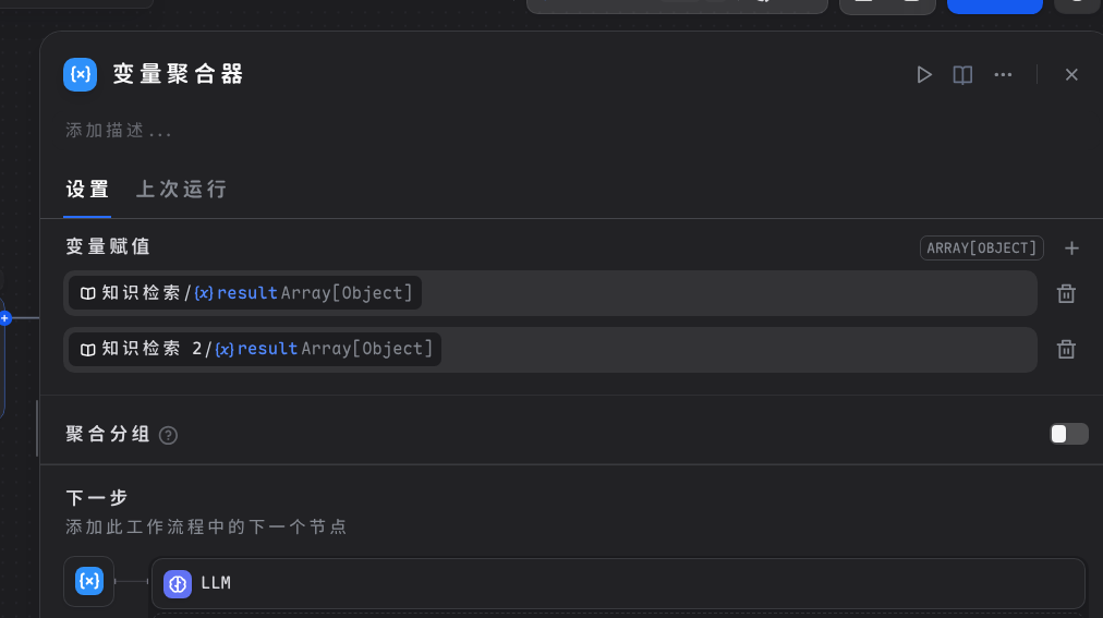 接下来是变量聚合器,将上面查询两个数据库的结果合并起来。